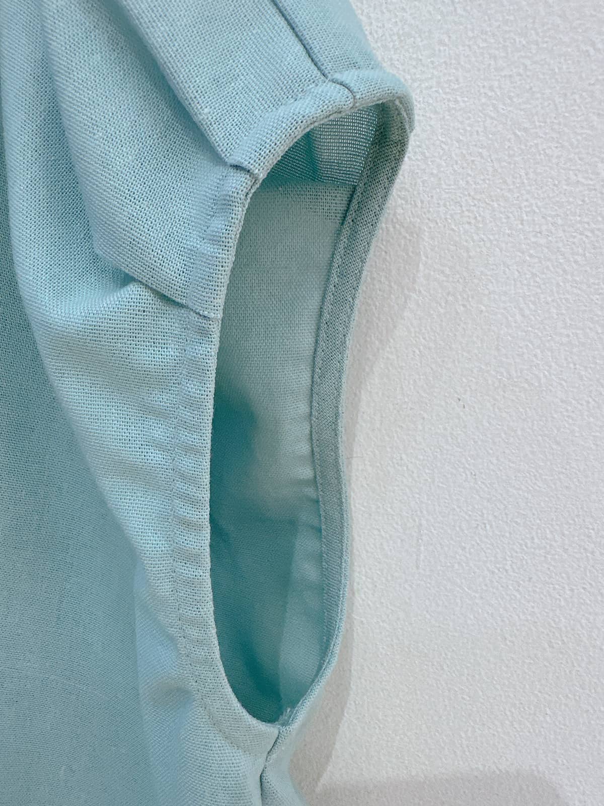 – Cổ áo thanh lịch, tay cộc dễ thương, đặc biệt phần lưng có thun co giãn giúp áo không bị phồng hay xô lệch.