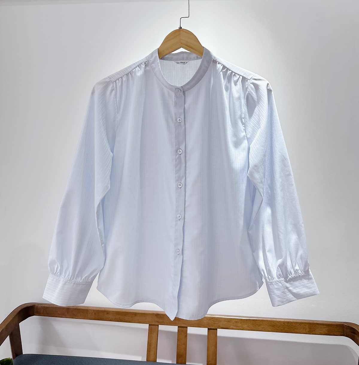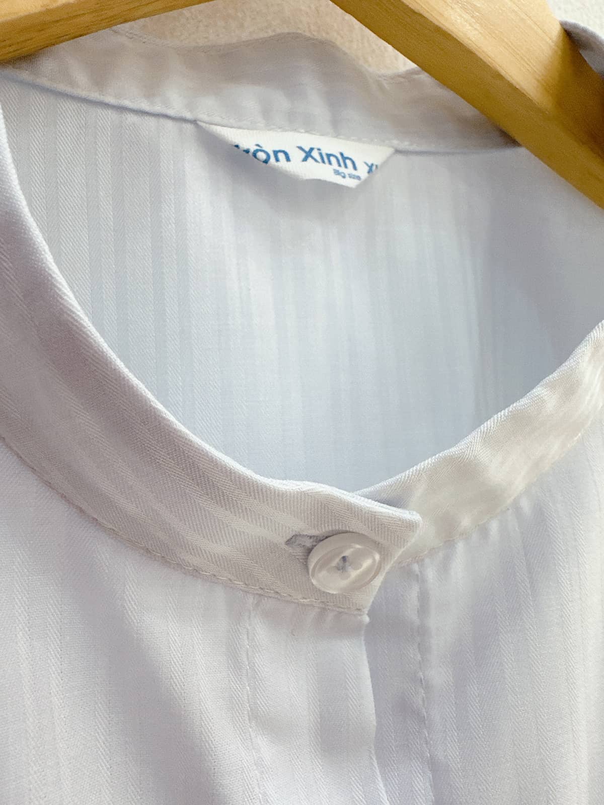 - Cổ trụ tinh tế: Tạo cảm giác thanh thoát, cổ cao hơn và sang trọng hơn hẳn sơ mi truyền thống.